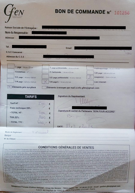 • Les tarifs annoncés pour les encarts publicitaires varient de 480 € à 1600 € par entreprise ;