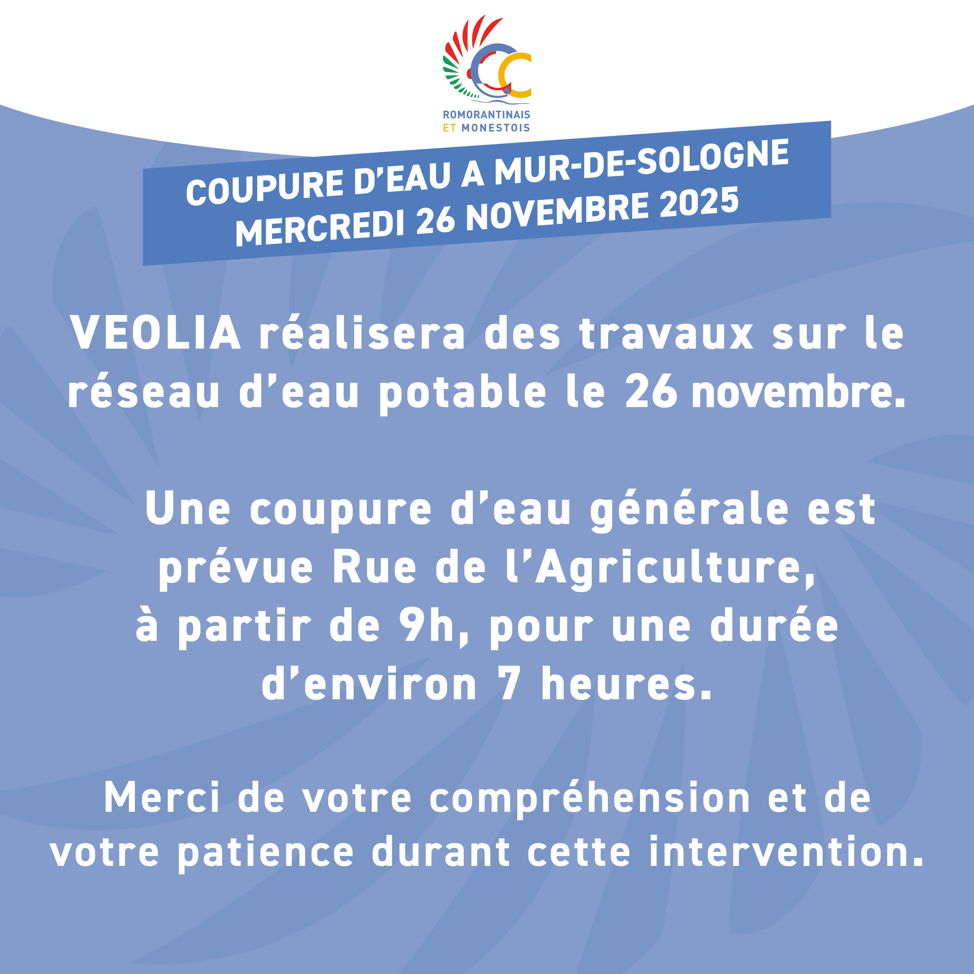 💧 Coupure d’eau à Mur-de-Sologne - mercredi
