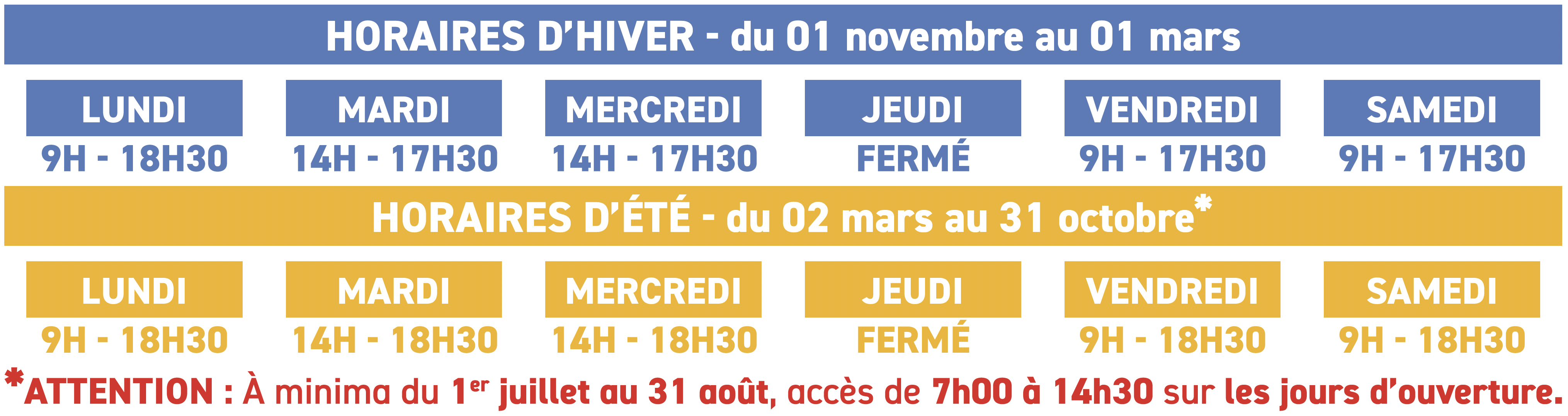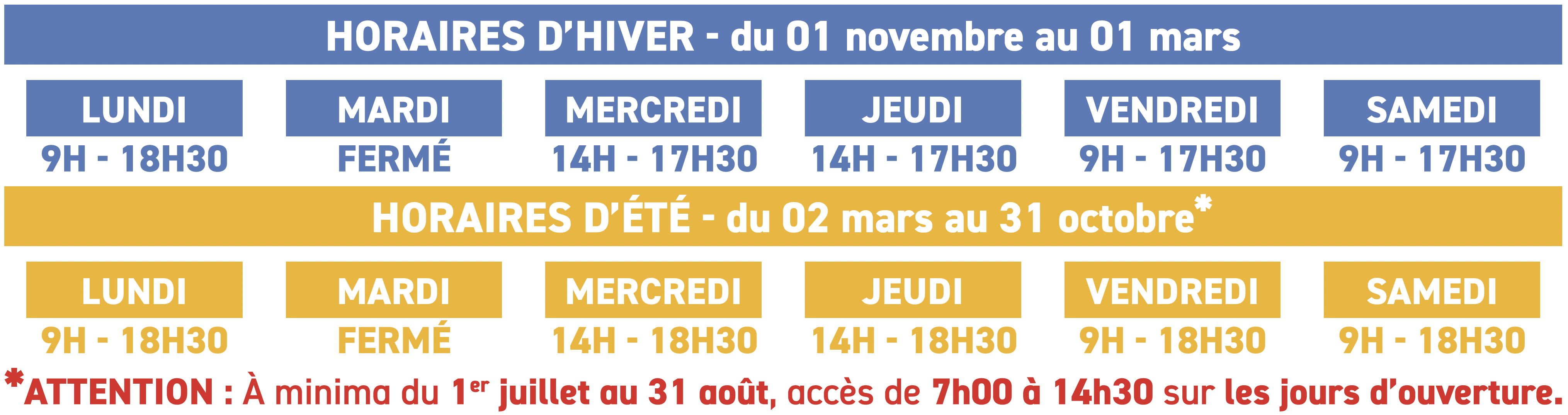 Mercredi, Vendredi : 9h à 12h30-13h à 17h