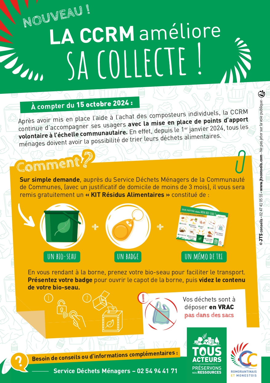 La CCRM, qui exerce les compétences de collecte et de traitement des déchets ménagers et assimilés sur les 12 communes de son territoire, met à disposition de tous les usagers deux solutions simples et complémentaires pour trier les résidus alimentaires :