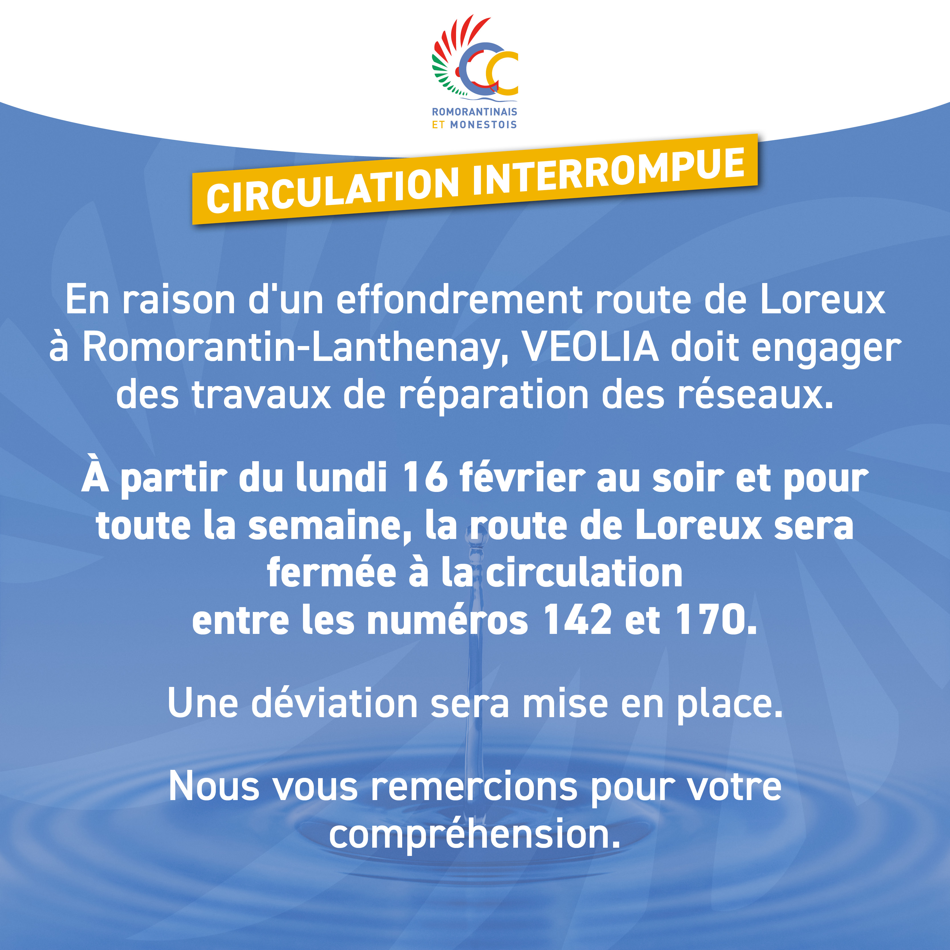 Accueil » Information importante : circulation perturbée route de Loreux