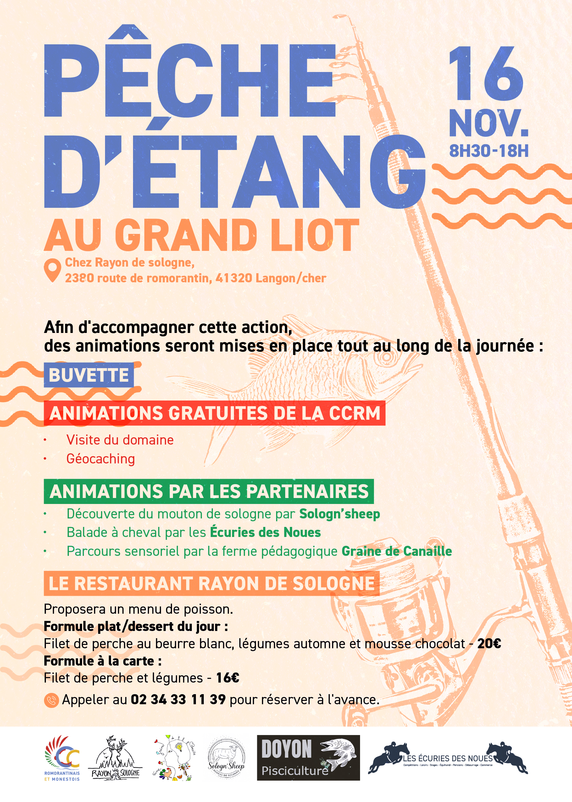 À l’issue de plusieurs semaines de vidange, l’étang du Grand Liot a accueilli ce dimanche la première journée de pêche d’étang organisée par la Communauté de Communes du Romorantinais et du Monestois (CCRM). Habitants et familles étaient au rendez-vous pour découvrir cette tradition de Sologne.